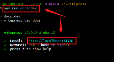 如果要查看自己电脑中的这个vitepress,还需要一条命令就是: