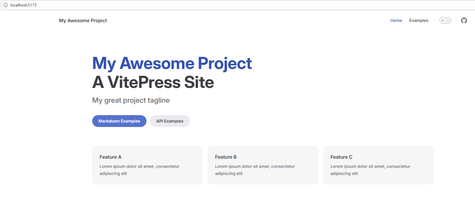 这时候会给一个本地的地址+端口号:http://localhost:5173/。直接在自己的浏览器里输入这个地址就可以查看在自己电脑上安装的vitepress了。附图:
